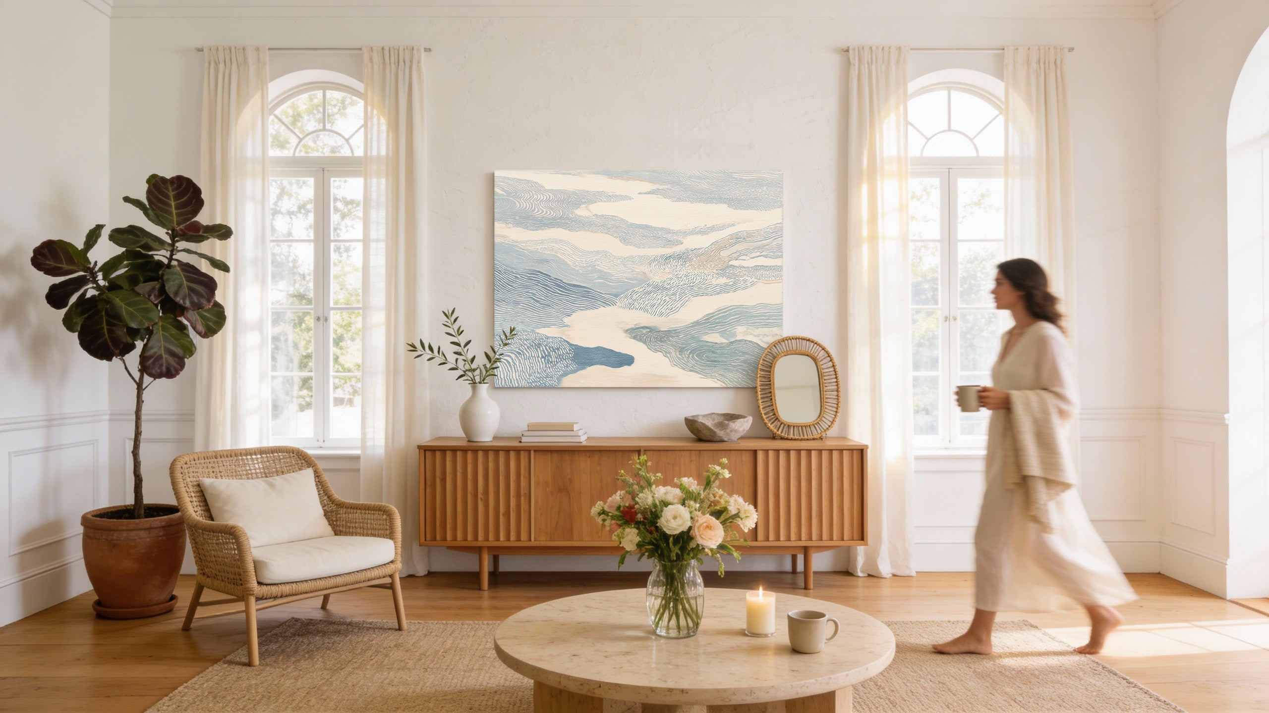 Serene Coastal Sailboats Field Flowers Canvas Print