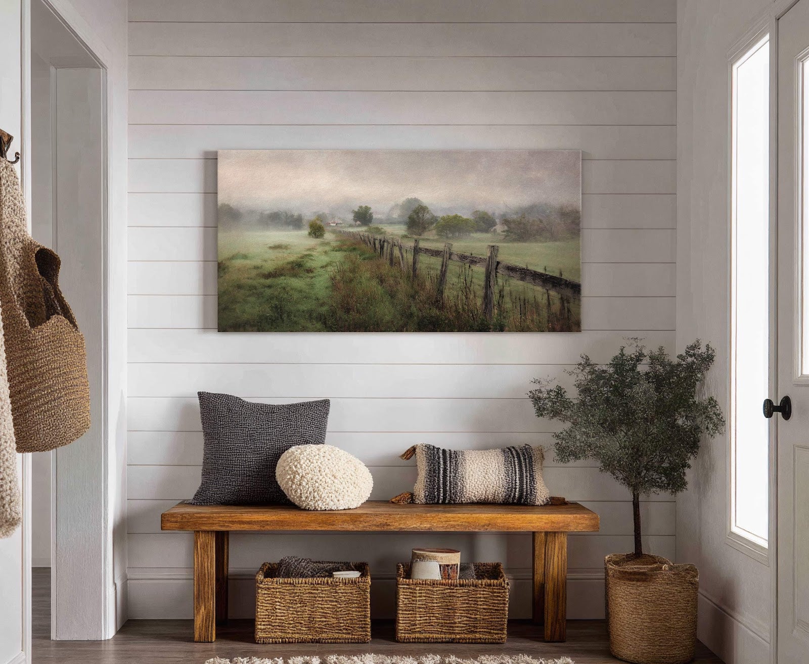Leinwanddruck „Nebelige Landschaft mit Zaun“