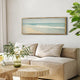 What makes this piece special is its restraint – the limited palette of cream, pale aqua, and hints of white creates a sense of calm that works in any space. The horizontal composition naturally draws your eye across the canvas, making rooms feel more spacious and open.