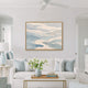 Consider the wall space and furniture below. Generally, art should be 2/3 to 3/4 the width of furniture it hangs above. Our size guide has room-by-room recommendations.