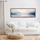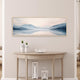 Consider the wall space and furniture below. Generally, art should be 2/3 to 3/4 the width of furniture it hangs above. Our size guide has room-by-room recommendations.